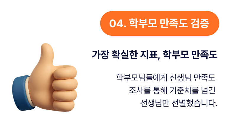 "수학을 포기하려던 아이가 이제는 수학이 제일 재미있다고 합니다. 3등급에서 1등급까지 올랐어요. 김○○ 선생님 정말 감사합니다!"
